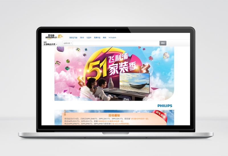 飞利浦五一家装季 亚马逊《飞利浦五一家装季》大促活动,页面设计主题突出,具有强烈视觉冲击力,背景简洁明亮,给人纯净之感,让消费者能更直观了解促销内容。